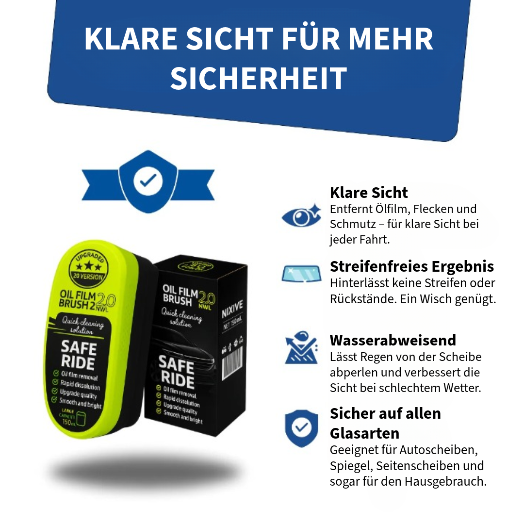 Die RainGuard™ Glasbehandlung entfernt sofort Öl und Schmutz von deinen Autoscheiben, sodass du wieder klar und sicher die Straße überblicken kannst. Dank der kraftvollen Formel verbesserst du nicht nur deine Sicht, sondern auch deine Reaktionszeit und Fahrsicherheit – bei jedem Wetter.