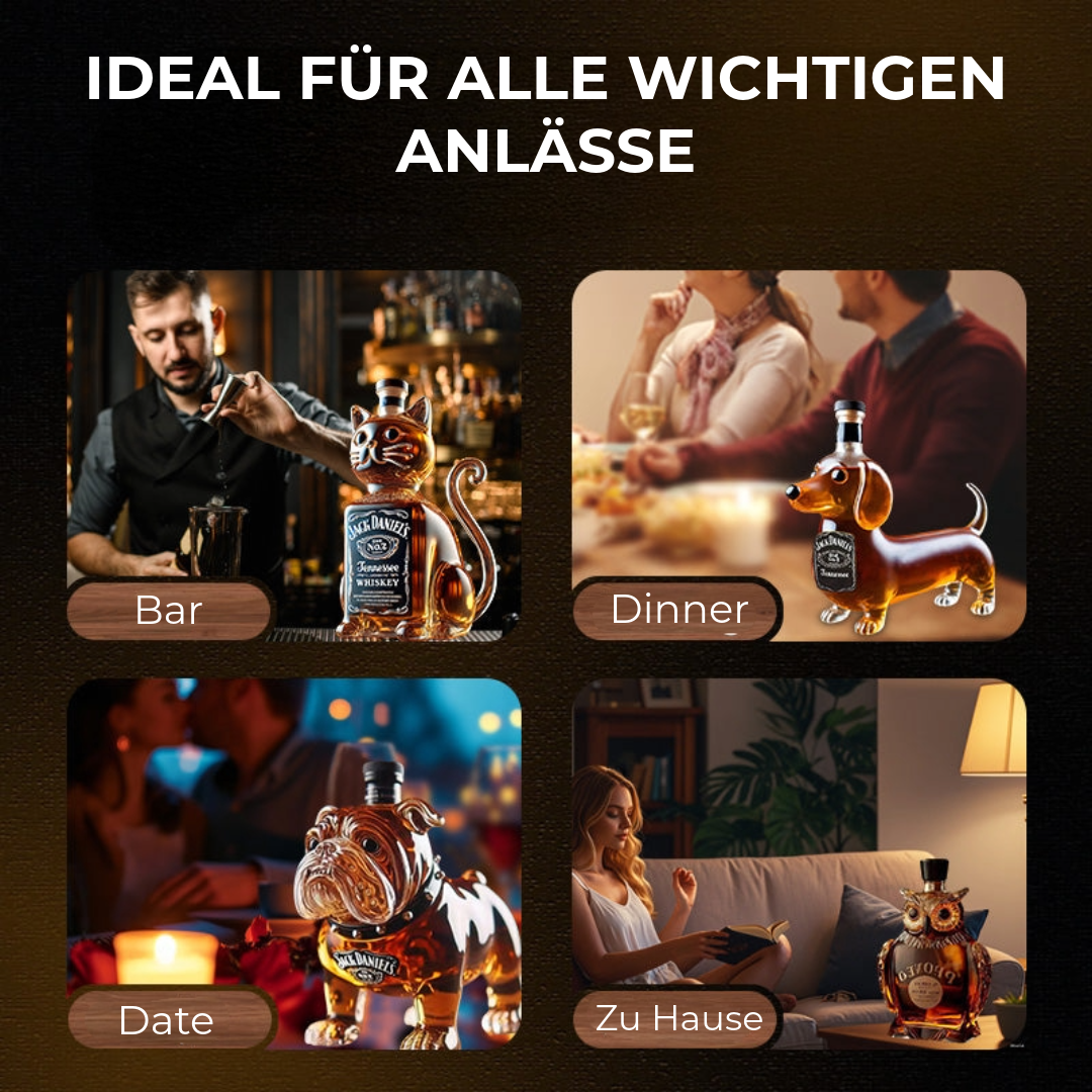 Suchst du ein originelles Geschenk für einen Whiskeyfan oder Hundeliebhaber? Diese Flasche kombiniert Humor, Luxus und emotionale Wertigkeit in einem einzigartigen Artikel. Dank der verschiedenen Stile gibt es immer eine Variante, die zur Persönlichkeit oder dem Lieblingshaustier einer Person passt.